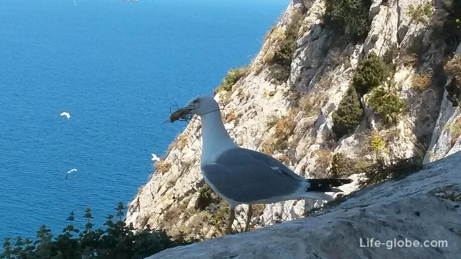 На противоположной стороне скалы Ифач есть небольшая смотровая площадка. С этой точки — виды на бескрайнее море.