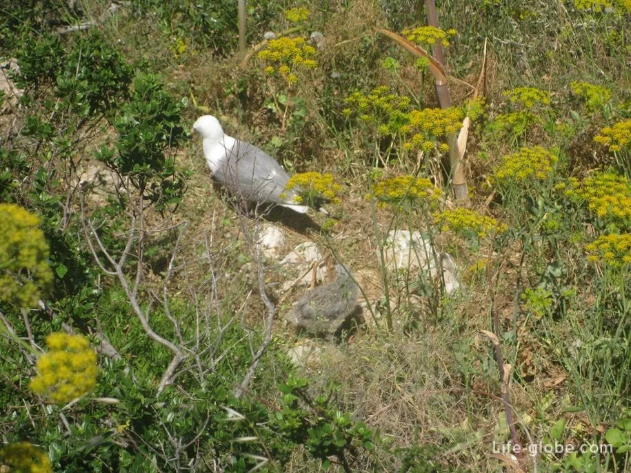 На склонах можно видеть чаек, заботящихся о своих малышах (в сезон гнездования).