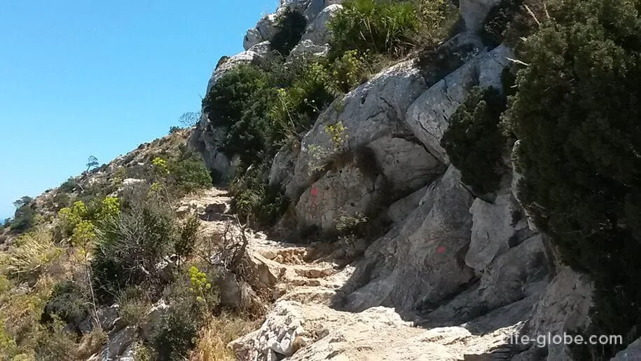 Следуя по этой тропе, можно подняться ещё выше на скалу Ифач. Мы были в тапках со скользкой подошвой(( Такая неудача, поэтому дальше путь нам был отрезан. Пожалели кончено, что не надели более удобную обувь.