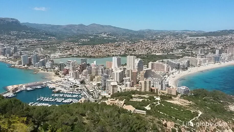 Так мы поднимаемся всё выше и выше до пещеры. С этой почки открываются самые потрясающие виды, весь Кальп как на ладони. Видим пляжи, морской порт, соленое озеро — Лас Салинас, город и окрестности.