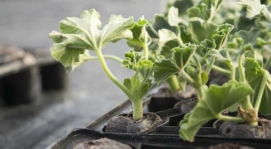 Черенки пеларгонии очень удобно проращивать в торфяных таблетках.