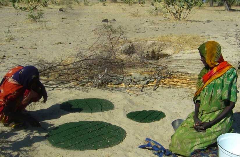 Примечательно, что для африканских женщин, живущих на берегу озера Чад, мало что изменилось: они по-прежнему вручную собирают пасту из водорослей в воде, а потом выливают ее в углубления на песке, где та быстро сохнет на солнце и образует рассыпчатый зеленый «пирог», называемый «дихе». Эти «пироги» женщины разрезают на кусочки и продают на рынке.