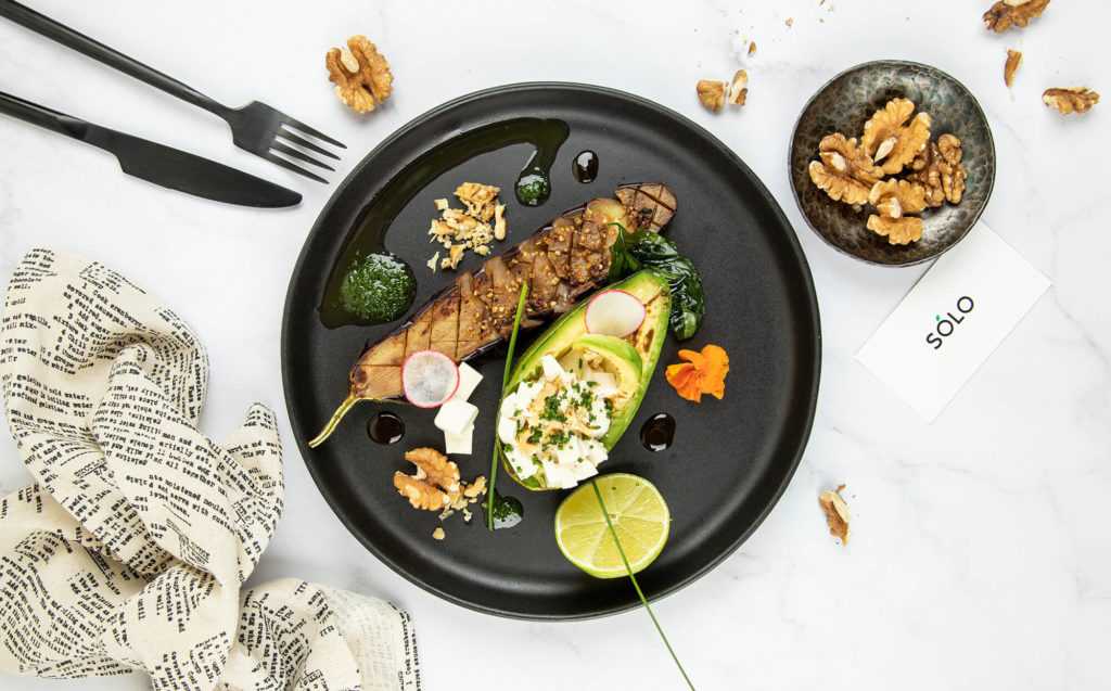Авокадо на гриле с тофу, слайсами из баклажанов, орехом пекан и соусом «Унаги» в рационах SoloFood