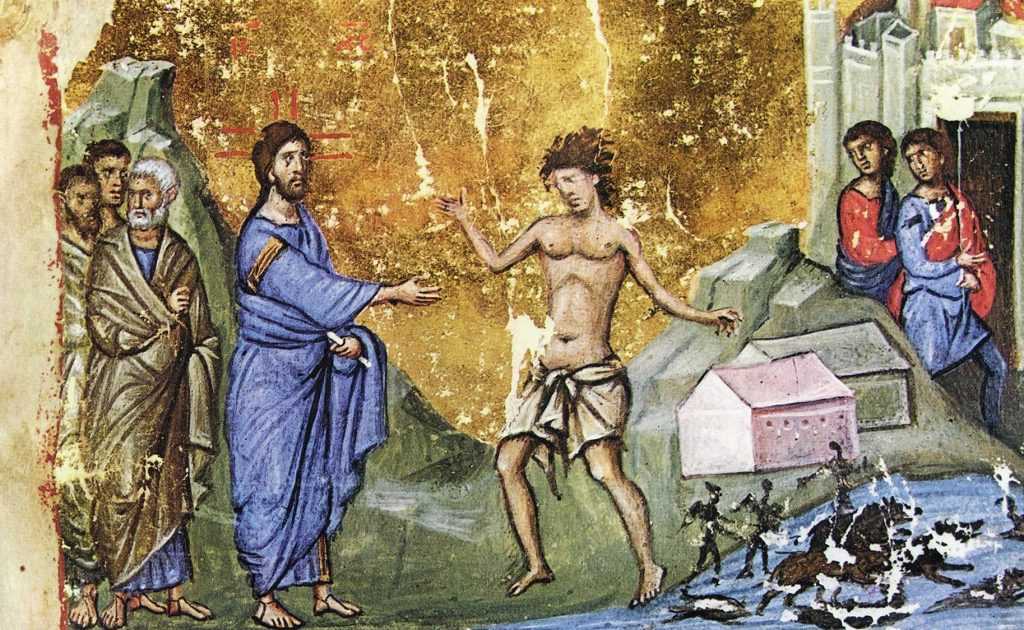 Христос изгоняет бесов из бесноватого (христианская фреска)